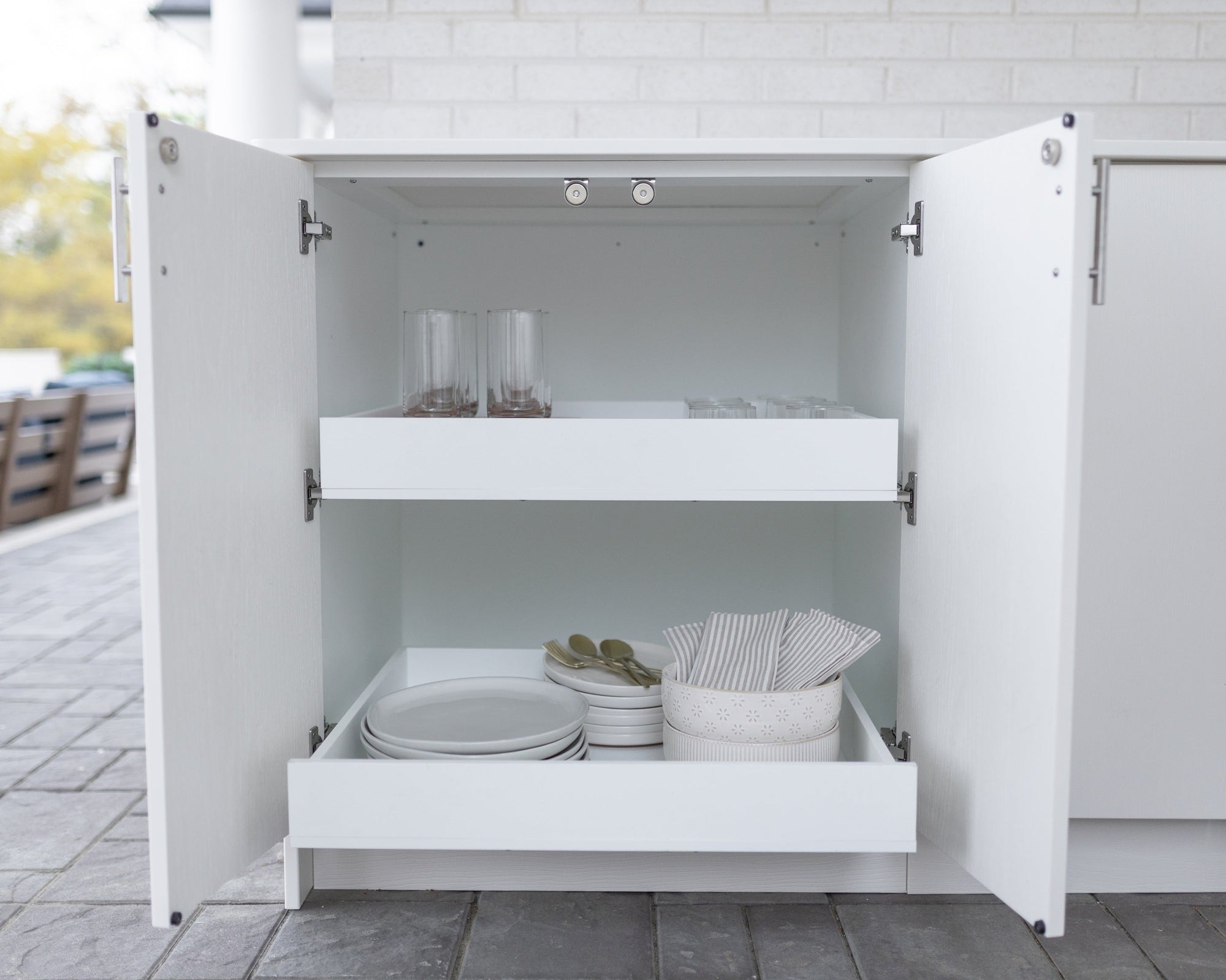 Various cabinet styles are available in widths up to 21" providing endless ways to coordinate with your selected grill cabinet and meet any style or functional needs. Examples of available cabinet options include single and double doors, pullout shelves and drawers, adjustable shelves, specialty organizers, and drawer/door combinations.