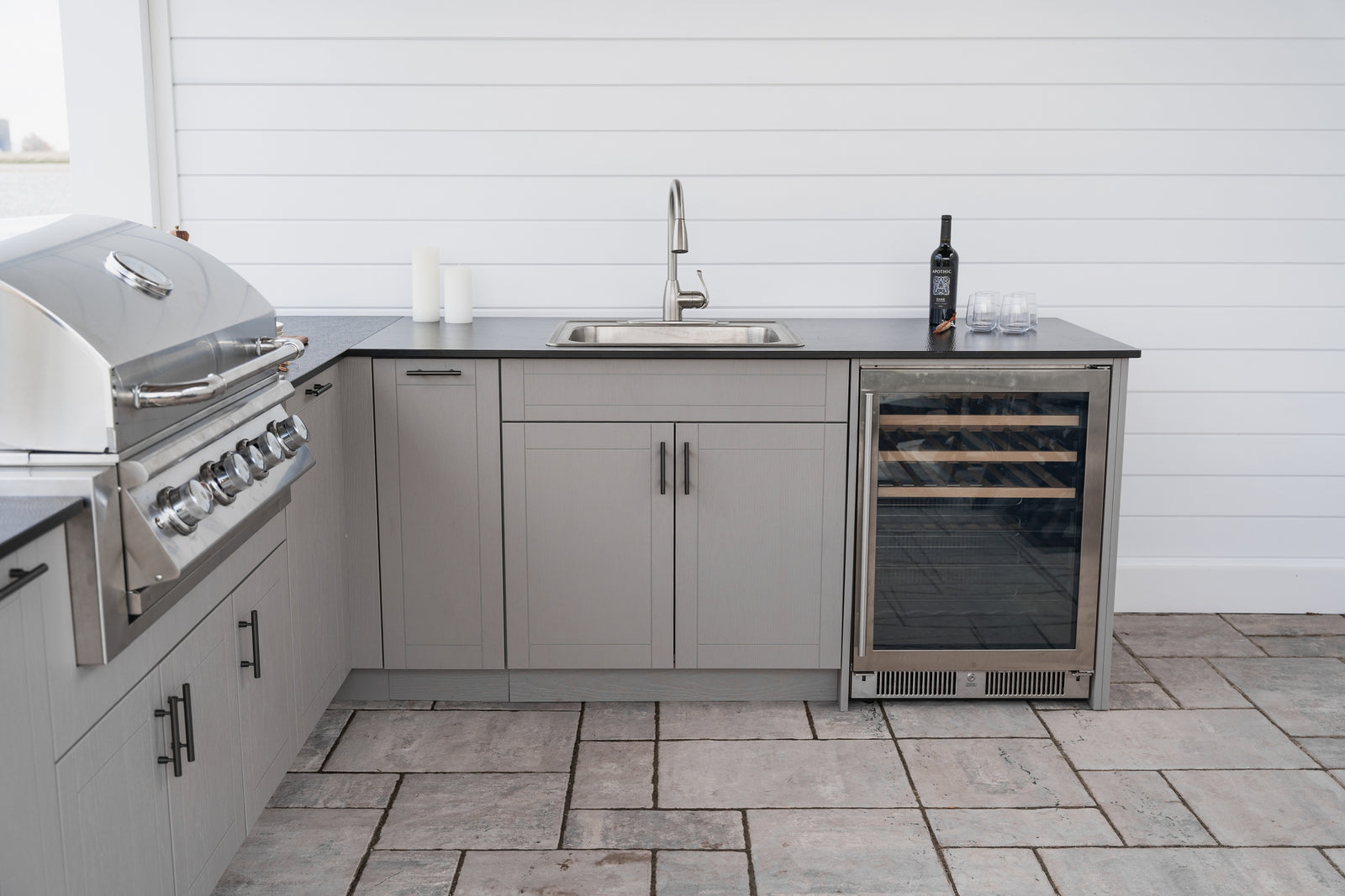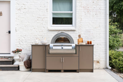 Each cabinet is made in Ohio using Marine Grade Poly (MGP) - a dense weather-resistant material built to endure the elements season after season. Modular, customizable, and available in a wide range of colors and finishes, Agora makes it each to create an outdoor kitchen that's as personal as the gatherings it hosts.