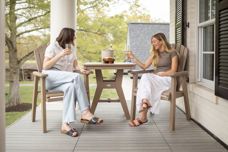 • A compact 28″ square table that comfortably seats 2 people, perfect for cozy outdoor dining